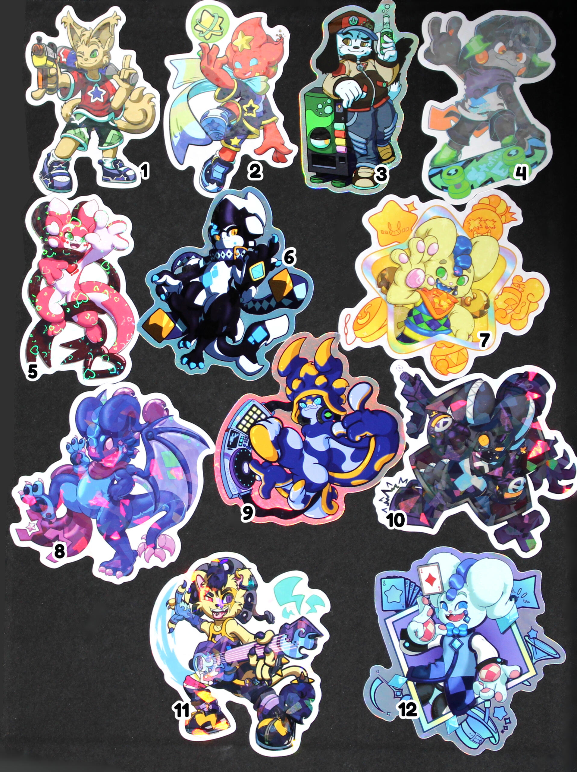A big batch of stickers from VoGrace with a variety of holographic effects.